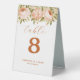 Elevate your wedding reception with this elegant and rustic table tent sign. Featuring a stunning terracotta blooming rose hydrangea floral design, this sign is perfect for a fall or winter wedding. making it easy to place on tables or other surfaces. The front of the sign displays the table number, while the back can be customised with the names of the couple and the wedding date.