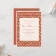 This baby shower invitation features a warm terracotta zig zag pattern with playful dots and a modern neutral colour palette. The simple layout keeps the baby shower details easy to read while the patterned border adds a cheerful decorative touch. It’s a stylish choice for a neutral baby shower, baby sprinkle, or fall celebration with friends and family.