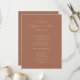 Double-sided terracotta/rust/burnt orange wedding program/bridal party listing. The front of this program has the names of the bride and groom and their wedding date along with a thank you message to your guests. It gives the schedule of the ceremony. On the back, you have space to add the names of your bridal party.