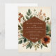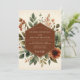 Embrace an earthy and rustic aesthetic with this stunning botanical arrangement. The design features a warm palette of terracotta, burnt orange, and deep sage green against a soft cream background. Detailed watercolor illustrations showcase a variety of foliage, delicate wildflowers, and a prominent sun-like blossom, creating a natural and elegant atmosphere for your special day.