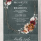 Elegant Red Burgundy, Terracotta , Orange earthy floral theme wedding Invitation featuring elegant bouquet of Marsala, Terracotta colour roses peonies and sage green eucalyptus leaves. Please contact me for any help in customisation or if you need any other product with this design.