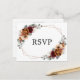 Elegant Red Burgundy, Terracotta , Orange earthy floral theme wedding RSVP postcard featuring elegant bouquet of Marsala, Terracotta colour roses peonies and sage green eucalyptus leaves. Please contact me for any help in customisation or if you need any other product with this design.