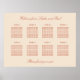 Terracotta Script 8 Table Wedding Seating Poster, please personalise the names of the couple and the names of the guests along with any of the other text that you may wish to personalise. A stylish seating chart poster featuring elegant terracotta text on a lovely plain straw beige colour background.