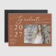 Yay! Your middle school, high school, college/university, tech school, or graduate program student did it and is graduating! Celebrate one of their life's precious moments and send out this graduation announcement magnetic card. The magnet features a simple, elegant modern minimalist style with beautiful calligraphy script on a terracotta background and the graduate's photo. Just customise and replace the text and photos in the personalisation box.