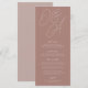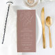 A beautiful typography based wedding menu card featuring your initials in oversized script lettering at the top, in tone on tone shades for a watermark effect. Personalise with your menu items beneath. Our Terracotta colorway is an elegant mix of earthy neutrals, featuring warm white rosy taupe lettering on a terracotta clay background.