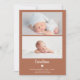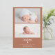 A modern, cute, simple and elegant script baby birth announcement with 2 photos grid collage, and an elegant typography calligraphy, with baby name. Introducing baby! The terracotta colour is fully editable.