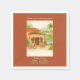 This watercolor napkin showcases a rustic Spanish hacienda with terracotta tones, lush greenery, and red flowers. Perfect for destination weddings in Spain, Mexico, or Latin America. AI-assisted textures create timeless warmth.