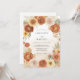 This design features a warm palette of terracotta, burnt orange, and soft peach. Large ranunculus and sun-drenched sunflowers create a rich floral arrangement over a subtle sandy watercolor wash. A touch of desert flair is added with a small cactus and delicate eucalyptus leaves. The aesthetic evokes a spirited southwestern mood, perfect for an outdoor autumn event.