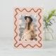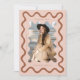 Quirky and unique graduation announcement card to send out to family and friends. There is a hand drawn squiggly wavy line around your photo with the graduate's name below. Terracotta background.