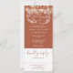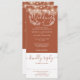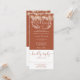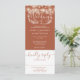 An all-in-one wedding invitation featuring pretty string lights and elegant typography on a terracotta background. The invitation includes an RSVP card that can be cut off and guest information details. Designed by Thisisnotme©