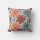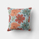 Infuse your home with retro-inspired charm with this bold floral pillow design. This pattern features an illustrated arrangement of stylized blooms in warm terracotta orange, deep crimson red, and muted teal, set against a soft, pale blue background. The hand-painted aesthetic, combined with dark navy and olive green leaf accents, gives the piece a modern mid-century or contemporary folk-art feel. Its simple, graphic shapes and vibrant palette make it an ideal statement piece for a contemporary living room, a minimalist bedroom, or any space needing a touch of artistic warmth.