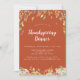 This charming Thanksgiving Dinner invitation showcases whimsical watercolor autumn leaves and pumpkins against an Autumn green backdrop. Use the Design Tools to personalise it. Also available as digital download!