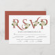 Elegant terracotta typography and white roses fall wedding RSVP card with meal choice. This elegant wedding design features the "RSVP" in a decorative relief font in terracotta with white roses. The back is of solid terracotta colour.