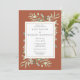 Featuring delicate watercolor leaves, this chic botanical wedding rehearsal dinner invitation can be personalised with your rehearsal dinner information, with a terracotta background. Designed by Thisisnotme©