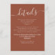 Complete your terracotta wedding suite with this elegant details and enclosure card. Designed in a simple, minimalist style with classic calligraphy script and clean typography, this card provides space for your wedding website, RSVP response information, and other important details. A versatile addition to your stationery, it keeps guests informed while matching beautifully with your terracotta theme. Stylish, functional, and timeless, it’s the perfect complement to your wedding invitations.