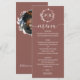 A simple chic foliage faux foil monogram terracotta wedding menu card. Easy to personalise with your details. Modern boho wedding menu card editable, wreaths photo wedding invitation, customisable, calligraphy handwritten font, simple, elegant.