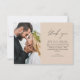Budget Handwritten Wedding Thank You Cards that have a photo on the front and back. The Thank you cards contain a modern hand lettered cursive script typography that are elegant, simple and modern to use after you minimalist simple wedding day celebration.