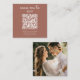 Make your wedding RSVP process seamless, with our RSVP QR code enclosure card. This compact customisable card features modern white lettering with a trendy terracotta orange background. The front includes a customisable text area and a space to generate a unique QR code for guests to easily RSVP through their smartphones. Go the the "personalise" option, add your wedding website URL to the area provided, and a QR code will generate on the design just for you. On the reverse side, add a personal touch with a photo. Make your special day even more memorable with this chic and functional wedding enclosure card.