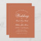 A simple, minimalist budget wedding invitation. It has only white text on terracotta background. The word Wedding and the names are written in an elegant calligraphic script.