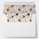 Bohemian Painted Flowers Navy Blue Rust Wedding theme. A handpainted floral pattern with earthy-toned botanicals adorns this French-Country-Bohemian-inspired envelope. An elegant and modern, dark and moody look. Navy Blue colour is Hex #2B324B. Terracotta Wildflower Lined Wedding Envelope.