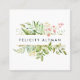 Chic botanical business cards in a unique square format feature your name or company name flanked by a top and bottom border of painted watercolor botanical leaves with golden geometric accents. Add your full contact information to the back in white on forest green. A unique and elegant choice for landscape designers, landscape architects, florists and green businesses.