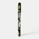Chic botanical patterned case features watercolor greenery, fern foliage and tiny pink flowers on a dramatic black background. Personalise with a single initial monogram near the bottom in classic lettering.