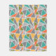 This medium fleece blanket has a mid-century modern design of triangles making a terrazzo floor look, in greys, turquoise, orange, gold, and green.