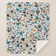 A terrazzo style design featuring random shapes in a range of sizes and colours.