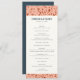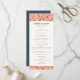 An on-trend terrazzo stone pattern with mid-century inspired typography give this skinny format wedding program a hip vibe in a desert inspired colour palette of rust, blush and slate blue. Keep wedding guests in the know with an easy to personalise the ceremony order and list of bridal party members on this two-sided program.
