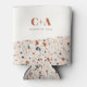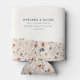 An on-trend terrazzo stone detail and mid-century inspired typography give this custom wedding favour can cooler a hip vibe in a desert inspired colour palette of rust, blush and slate blue. Personalised with a modern monogram, wedding date on one side and custom message text on the other, it's easy to customise these to suit your event.