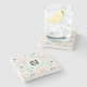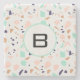 White background with multi coloredterrazzo pattern in blush, mint, beige and blue. Personalise and add your monogram initial, letter.