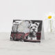 A sweet terrier dog in a vintage style red wagon full of flowers. Send this fun happy birthday card to your friends.