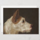 This design features a painting by the English artist James Ward (1769–1859), who specialised in depicting animals. It shows a profile view of a dogs head. The breed of the dog is a terrier. The dog has white fur and brown ears that are standing on end. Its big brown eyes and wet nose can be seen on its face. The dog even appears to be smiling gently.