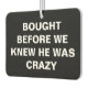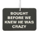 This is a black and white air freshener that says, "Bought Before We Knew He Was Crazy", making it perfect for any Tesla owner. It is easy to customise with any saying, and makes a wonderful gift.