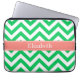 Emerald Green and White Large Chevron Zig Zag Pattern,Navy Blue Ribbon Name Monogram Label