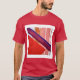 I give wanted to give this a 4 instead of a 5 because these Basic DARK T0shirts run unexpectedly SLIM or Narrow. Which is great if you do not have a potbelly, but I have a paunch. It isn't the shirt's fault that I've got a beer belly. The design and shirt itself is a quality cotton shirt. The color is more of a deep purple, but still a very pretty color. The Basic DARK T-shirts run a bit SLIMMER than the Basic Ts. The neck is a fraction narrower (or seems to be narrower) also. I'm a paunchy middle-aged woman and my neck is 12 inches (31cm) thick and the neckline fell about the same as in the photo of the man, and I had the desire to tug it a bit. So if you're a thick necked man or like loose shirts, be aware these are slimmer shirts. Once I get rid of my lockdown paunch it'll look great. The shirt washed well in cold water with no apparent bleeding. We don't have a dryer, so it hung dry. Did not shrink. Love the colors and the design. The design looks smaller on my shirt than it does on the model on-line. But still, it looks good on the shirt. The printing looks as it does on the model, just the size seems fractionally smaller. Washed garment in cold water, hung dry and design appeared unaffected.