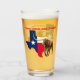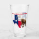 Proud "Texan" Born and Raised and I'll Drink to That! A pint glass that boldly shows the Texas state outline and flag colours along with a longhorn. A "one of a kind" souvenir of a visit to Texas. Personalise by changing the city to one of your choice.