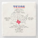 Texas. The state of the United States of America. Marked red on the USA map. Useful info about the capital, the largest city, the time zone, as well as about the highest and the lowest points. The number of the population, state's name before statehood and the date of admission to Union, nickname, motto and the state's song. Word Texas is decorated with the American flag of blue, white and red colours. Elegant stone coaster. You can transfer this design to another product of your choice, just use an option to the right of this description. Enjoy and be happy!