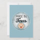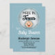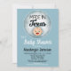This funny baby shower invitation features a cute white baby face that says "Made In Texas" on a blue background. Image is on front and back of invitation.