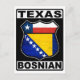 Classic US route sign style design, with the text TEXAS BOSNIAN, and the flags of the state of Texas and Bosnia Herzegovina.