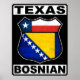 Classic US route sign style design, with the text TEXAS BOSNIAN, and the flags of the state of Texas and Bosnia Herzegovina.