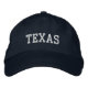 A Basic Adjustable Cap embroidered with the (customisable) text Texas. . Select the hat and text colour and style of your choice.