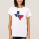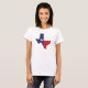 Texas flag map design women's white T-Shirt. This design features the map shape of Texas that's filled with the flag of Texas. Wear this state love T-Shirt to show you are patriotic and proud to be from Texas.