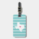 Rep your home state of Texas with this cute turquoise and pink luggage tag featuring a silhouette map of the state of Texas with a pink heart inside, overlaid on a trendy preppy aqua stripe background. This cute design in trendy colours makes a great Christmas stocking stuffer or gift for women, teens and girls whether living in Texas, out of state for college or feeling homesick or nostalgic for their home state. Personalise the reverse side with your contact details in white on matching turquoise.