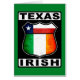 Texas Irish design, in the style of a cool American road route sign. The text Texas Irish is along the top and bottom, with the flag of the State of Texas and the flag of the Republic of Ireland inside the route sign. Great for Texans of Irish descent, and for ex-pats in the Lone Star State.