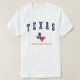Texas, Lone Star State flag map design men's white T-Shirt. This design features "Texas" in blue with the map of the state filled with the flag of Texas. Wear this state love T-Shirt to show you are patriotic and proud to be a Texan.