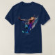 I give wanted to give this a 4 instead of a 5 because these Basic DARK T0shirts run unexpectedly SLIM or Narrow. Which is great if you do not have a potbelly, but I have a paunch. It isn't the shirt's fault that I've got a beer belly. The design and shirt itself is a quality cotton shirt. The color is more of a deep purple, but still a very pretty color. The Basic DARK T-shirts run a bit SLIMMER than the Basic Ts. The neck is a fraction narrower (or seems to be narrower) also. I'm a paunchy middle-aged woman and my neck is 12 inches (31cm) thick and the neckline fell about the same as in the photo of the man, and I had the desire to tug it a bit. So if you're a thick necked man or like loose shirts, be aware these are slimmer shirts. Once I get rid of my lockdown paunch it'll look great. The shirt washed well in cold water with no apparent bleeding. We don't have a dryer, so it hung dry. Did not shrink. Love the colors and the design. The design looks smaller on my shirt than it does on the model on-line. But still, it looks good on the shirt. The printing looks as it does on the model, just the size seems fractionally smaller. Washed garment in cold water, hung dry and design appeared unaffected.