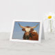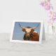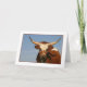 Photo card, Texas longhorn cow against blue sky, burnt orange trim with white matting around edges, customise it with your own text
