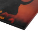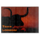 Texas Longhorn cutting board. With orange Texas Longhorn caption superimposed on the Texas Longhorn in a lovely scarlet sunset silhouette. Texans will love this dramatic black longhorn bull with huge curved horns. Casts a warm orange glow in your kitchen or at your BBQ. Perfect for loading your steaks to delight and surprise your Texan friends when you put them on the barbecue grill.