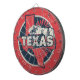 Hit the bullseye with this Texas-inspired dartboard, featuring a vintage travel poster style that brings the Lone Star State to life. With a rustic weathered palette of red, white, and blue, this design showcases iconic Texas details like a cowboy on horseback, star, and an oil well, capturing the rugged charm of the state. Perfect for a man cave or game room, this dartboard can be personalised with custom text, including a name and established date, making it a unique addition to any space. Whether it’s a gift for him or any dart lover with a Texas spirit, this personalised custom dart board promises hours of fun with a touch of state pride.